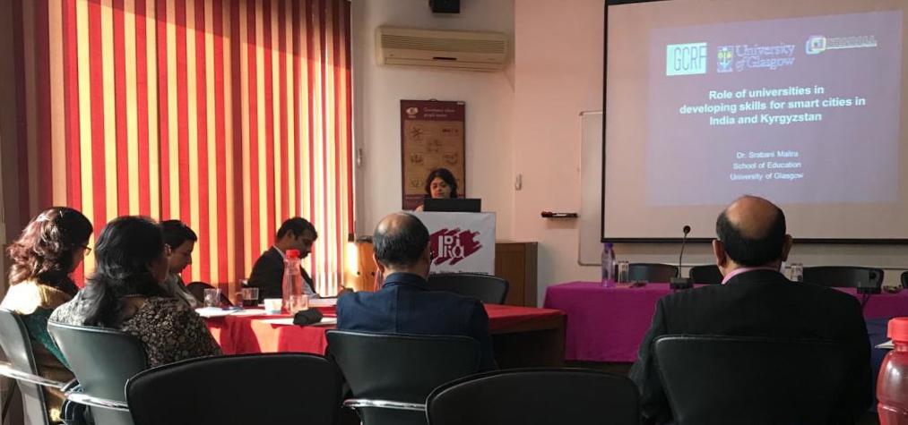 The Roundtable, co-organised by Glasgow’s Centre for Research and Development in Adult and Lifelong Learning (CR&DALL), was well attended by academics from leading universities in India as well as practitioners and policy makers from the National Skill Development Council. The Glasgow team introduced work at the university linking smart and learning cities, particularly focussing on the need to facilitate opportunities for participatory and lifelong learning. A number of presentations were made by Indian colleagues such as Professor Rajesh Tandon, Founder-President, PRIA and UNESCO Co-Chair in Community Based Research, Dr. Kaustuv Kanti Bandyopadhyay, Director of PRIA and Professor Ashok Kumar from the School of Planning and Architecture, New Delhi focussing on the need for public engagement, political willingness and collaboration within smart cities. Ms. Soma Sharma from NSDC expanded on the skill policies that are being undertaken to train marginalised young people for smart cities. The presentations were followed by open discussions that addressed several challenges faced by universities in providing learning opportunities within smart cities. We are very grateful to all participants for sharing such thoughtful insights at the Roundtable.